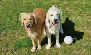 Arya aura 1 an en juillet 2026, c’est une golden très curieuse et très active. C’est l’opposée de Shana. Elles ont la même maman mais pas le même papa. Elle est couleur crème comme son papa. Elle fait beaucoup de bêtises, ce qui fait finalement son charme. Elle est très joueuse, elle adore tous ses jouets qui roulent et elle réclame énormément de câlins.